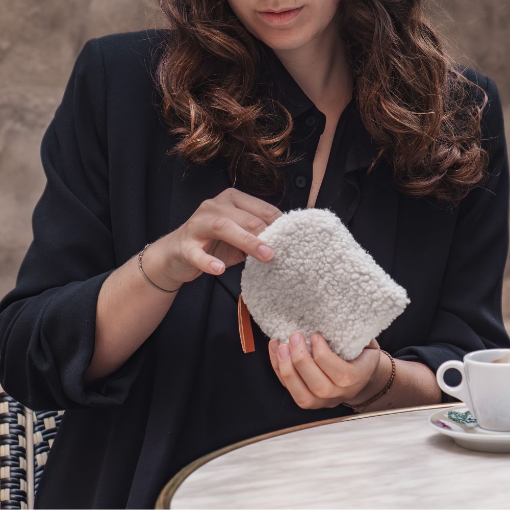 Tout en douceur, le porte-monnaie VIVA se distingue par son revêtement en fausse fourrure façon teddy bear, aussi moelleux qu’une peluche. Compact mais fonctionnel, il accueille aussi bien vos pièces et billets que vos cartes bancaires. Sa fermeture zippée, rehaussée d’une languette en cuir, allie praticité et élégance. Un petit accessoire plein de caractère, à glisser dans un sac ou à garder sous la main au quotidien.