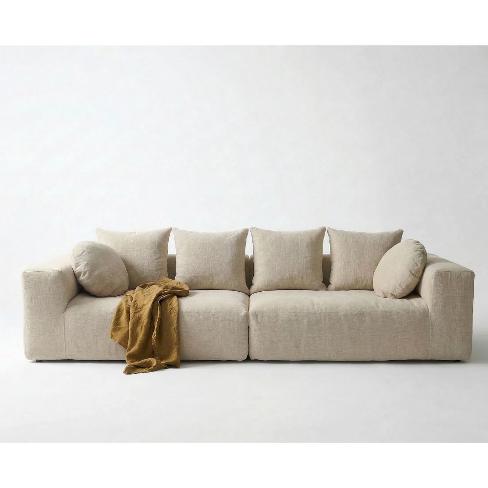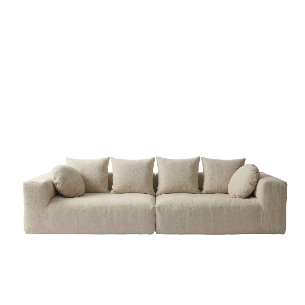 Veuillez noter que nos canapés peuvent présenter une légère variation dimensionnelle de jusqu'à 3% par module. Cette tolérance est normale et fait partie des spécificités de la fabrication sur mesure, du fait de la conception de la structure et de la souplesses des matériaux.