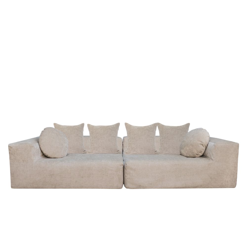 Veuillez noter que nos canapés peuvent présenter une légère variation dimensionnelle de jusqu'à 3% par module. Cette tolérance est normale et fait partie des spécificités de la fabrication sur mesure, du fait de la conception de la structure et de la souplesses des matériaux.