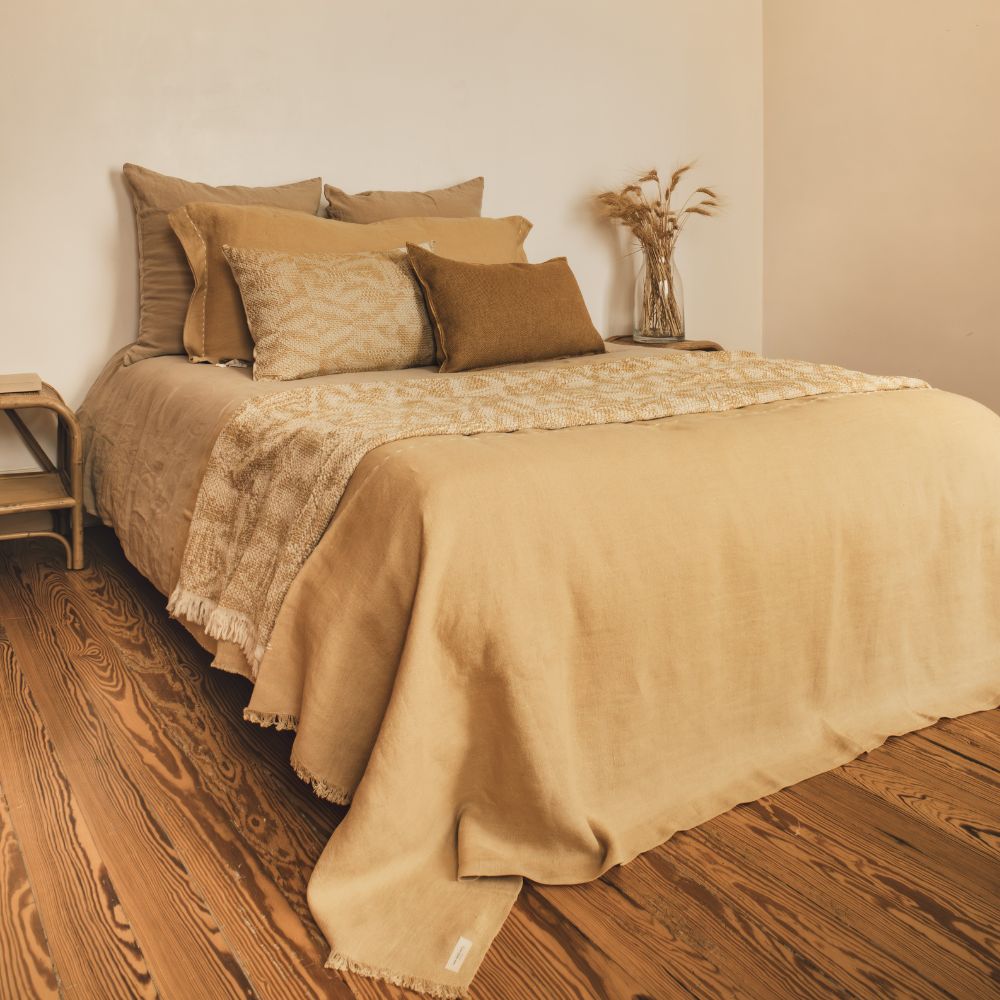 Découvrez la housse de coussin rectangulaire VÉSUVE en coton, format 40 x 60 cm. Son motif subtil évoque un feuillage abstrait, révélé par un jeu de nuances entre le beige doré nommé Narcisse et une tonalité plus claire qui apporte relief et douceur à l’ensemble.