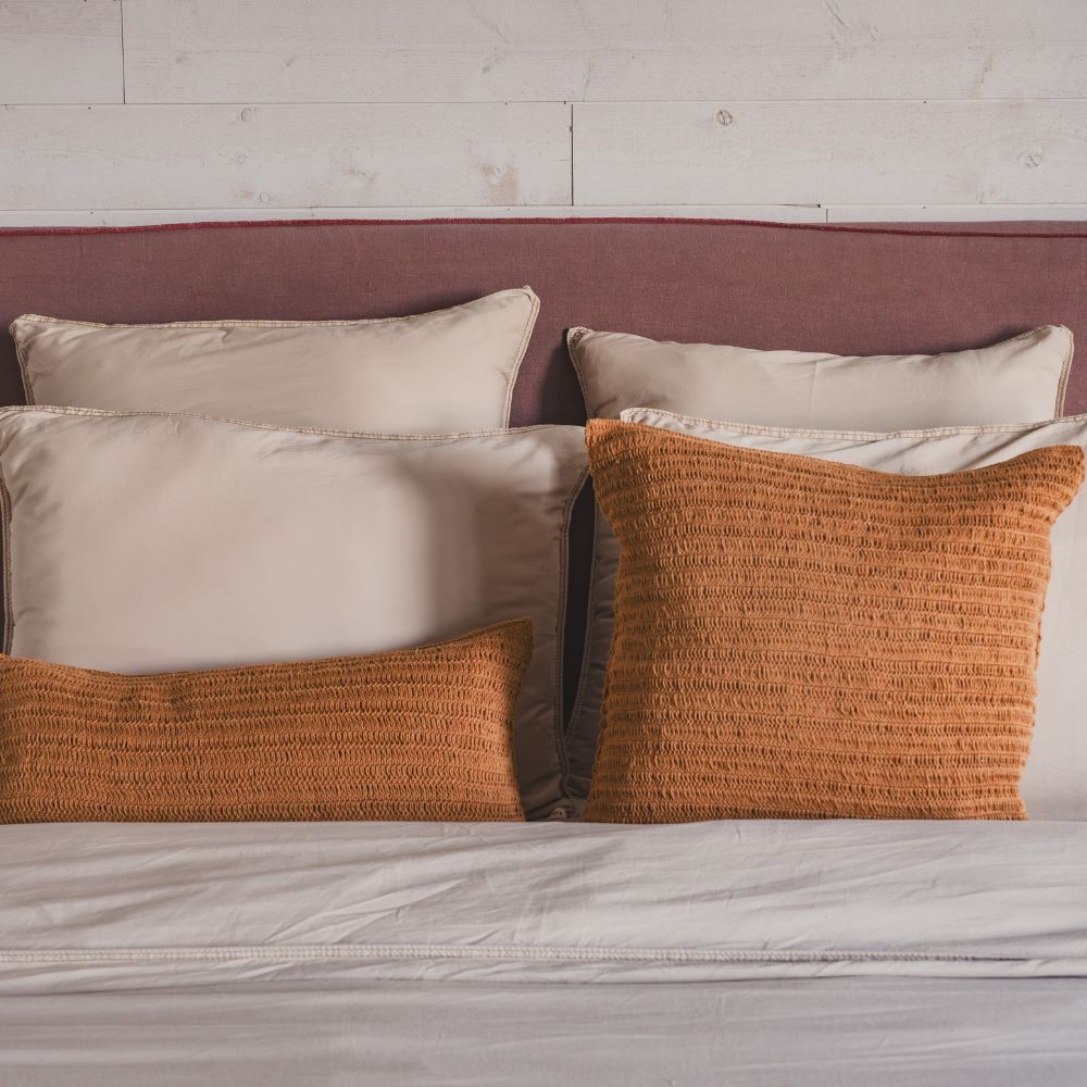 TIERRA DEL SOL est une collection en coton crocheté à la main. Chaque coussin est unique, marqué par son geste artisanal. Ses teintes terreuses (Sienna, Sand, Cusco) rappellent l’éclat d’un désert espagnol et apportent chaleur et authenticité à l’intérieur.