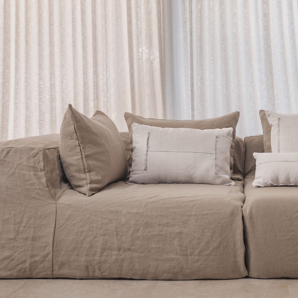 Les coussins en lin du thème Handmade sont confectionnés à partir de tissus issus des revêtements de nos canapés, dans une démarche attentive et responsable. Dotés d’une finition zippée et faciles d’entretien, ils conjuguent durabilité, caractère et authenticité.