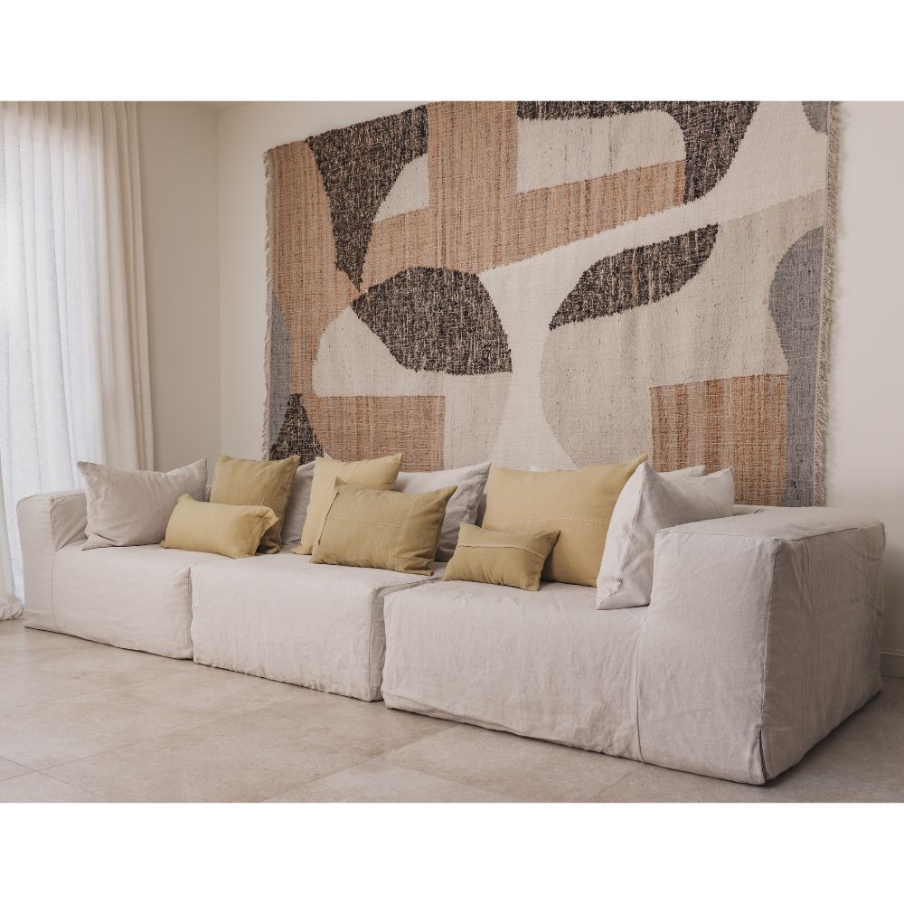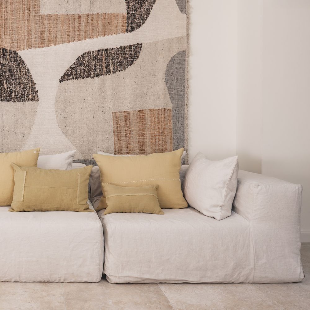 Les coussins en lin du thème Handmade sont confectionnés à partir de tissus issus des revêtements de nos canapés, dans une démarche attentive et responsable. Dotés d’une finition zippée et faciles d’entretien, ils conjuguent durabilité, caractère et authenticité.