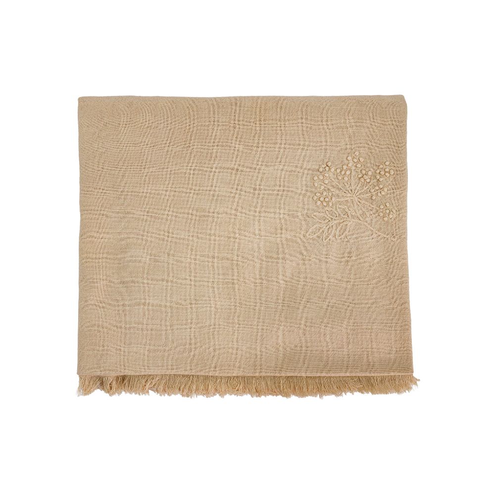 Le plaid DONATO, issu du thème Douce Hacienda, séduit par son élégance naturelle et ses délicates broderies faites à la main qui subliment cette toile.
