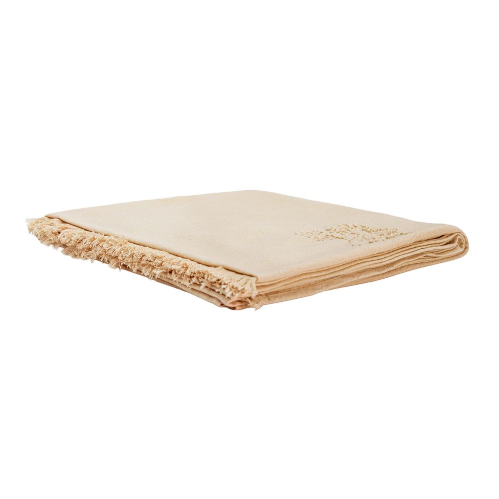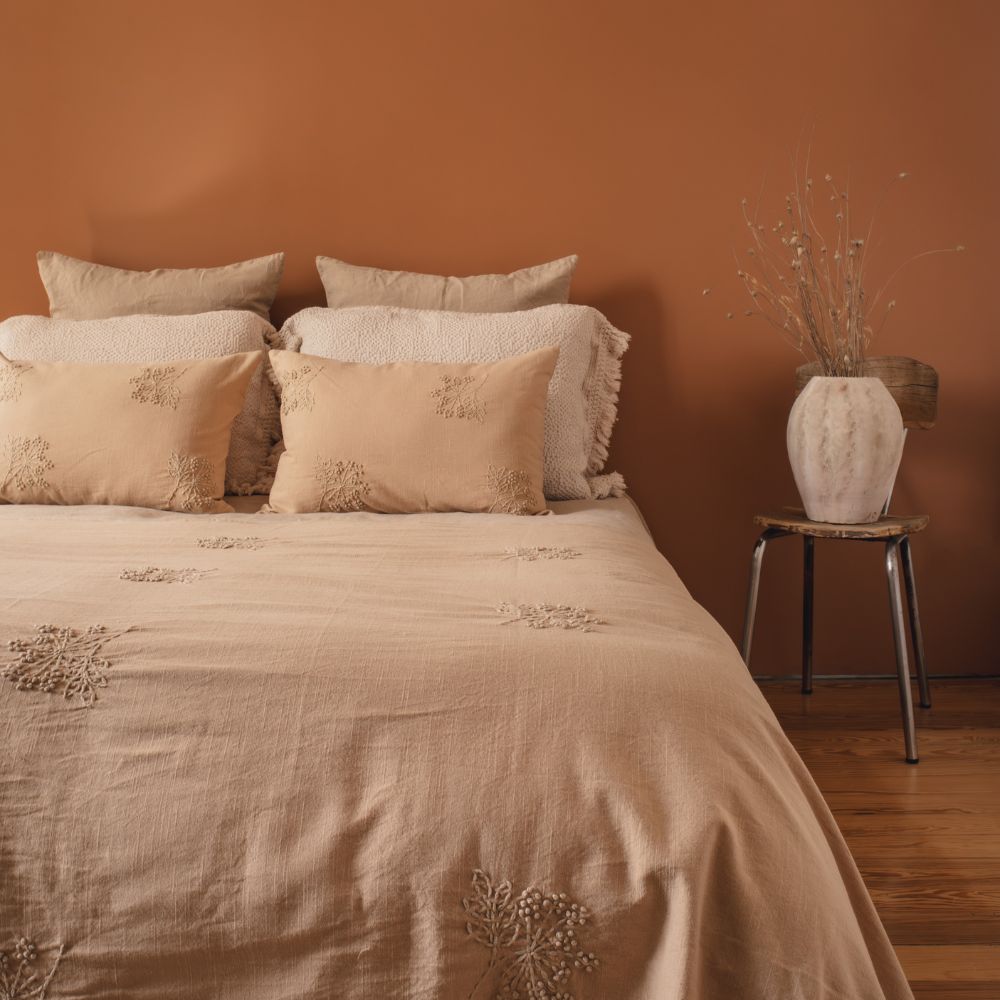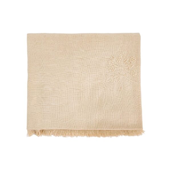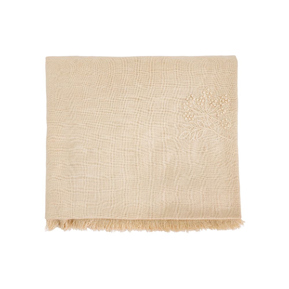 Le plaid DONATO, issu du thème Douce Hacienda, séduit par son élégance naturelle et ses délicates broderies faites à la main qui subliment cette toile.