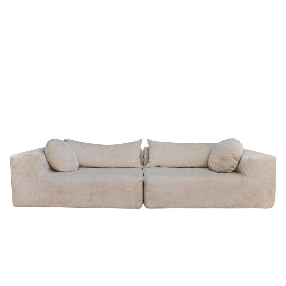 - Livré avec 2 coussins 50 x 120 cm et 2 coussins ronds de 63 cm de diamètre